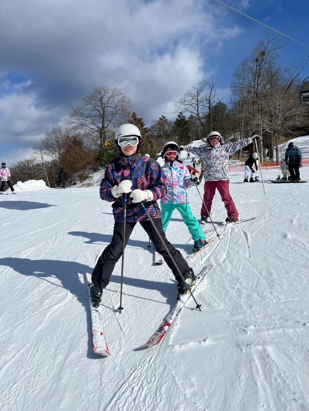 今天是此生滑雪初體驗,君君教練給她們滿滿鼓勵和信心,穩定的學習後、午餐吃飽直接一個接一個坐上纜車,一開始非常緊張到教練準備下課後又一話再滑完全欲罷不能~ 只能說,太讚啦👍🏻 -