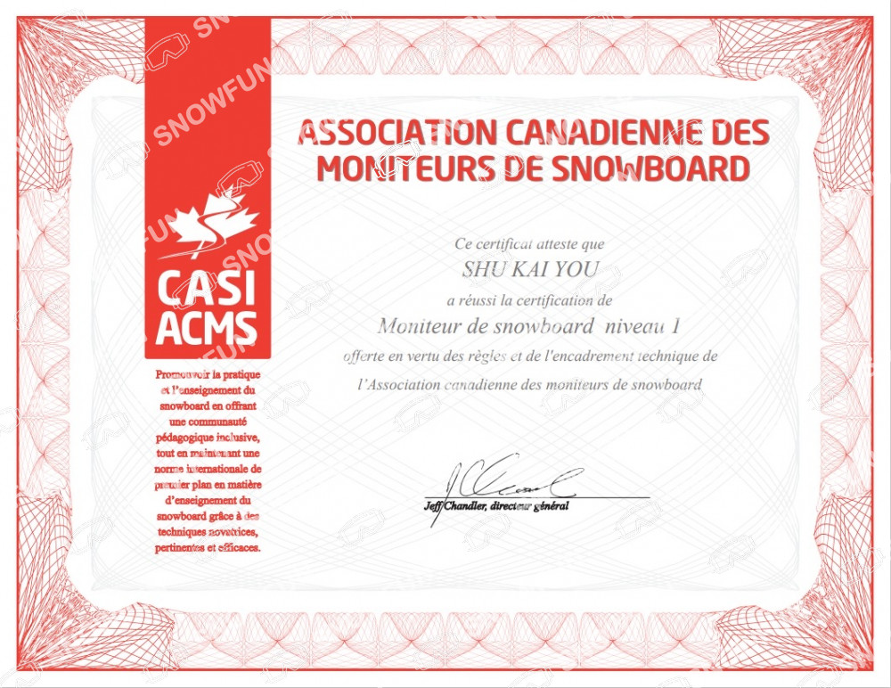 從事運動教學10年以上,有超過5年的滑雪經驗,並有4年滑雪機經驗,滑雪教學2年